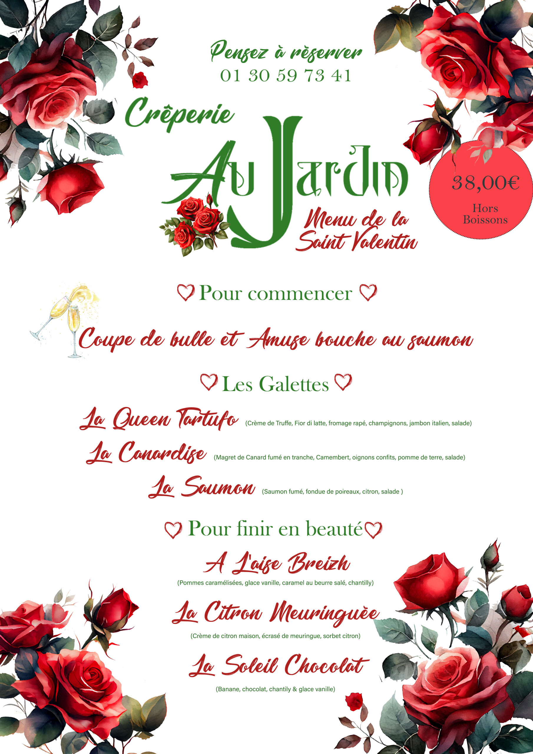 Menu de la Saint Valentin Découvrez notre Menu unique spécialement pensé pour votre soirée romantique du 14 Février prochain, pensez à réserver !